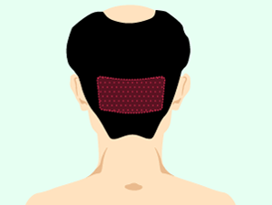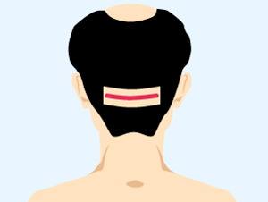 採取方法 | 後頭部から皮膚を帯状に 切り取る ![]() |
