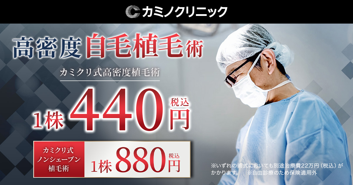 | 1株あたりの 料金 | 440円〜 M字・生え際・前頭部・ 頭頂部全て対応可能 |