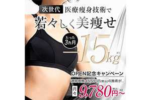 | キャンペーン | 先着10名限定 1kg痩せるごとに 1万円をキャッシュバック |