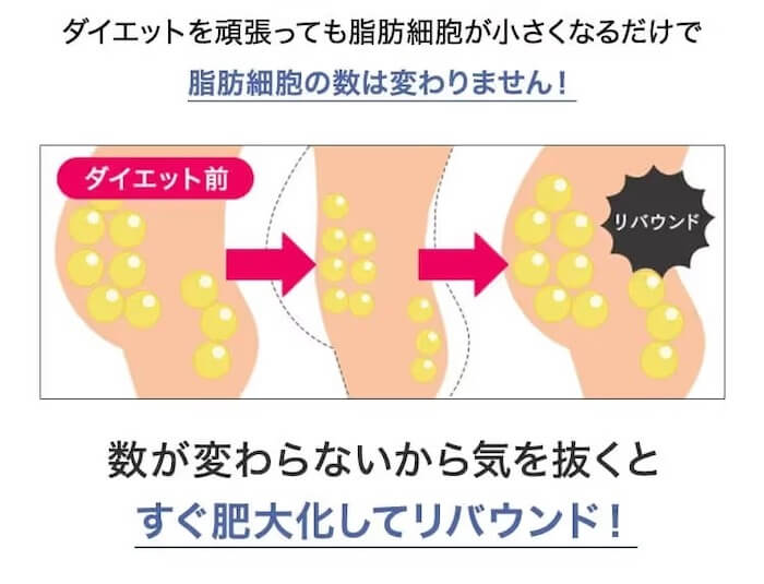 脂肪細胞は一度増えると、通常のダイエットでは減らすことが難しく、食事制限や運動だけではリバウンドしてしまうケースも少なくありません。